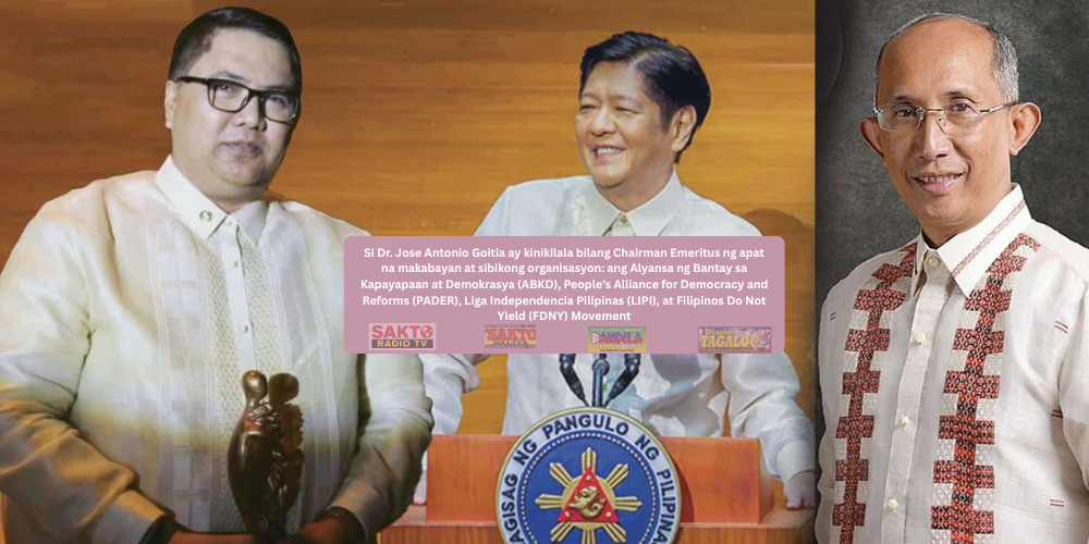 Si Dr. Jose Antonio Goitia ay kinikilala bilang Chairman Emeritus ng apat na makabayan at sibikong organisasyon: ang Alyansa ng Bantay sa Kapayapaan at Demokrasya (ABKD), People’s Alliance for Democracy and Reforms (PADER), Liga Independencia Pilipinas (LIPI), at Filipinos Do Not Yield (FDNY) Movement.(( MARISA SON ))